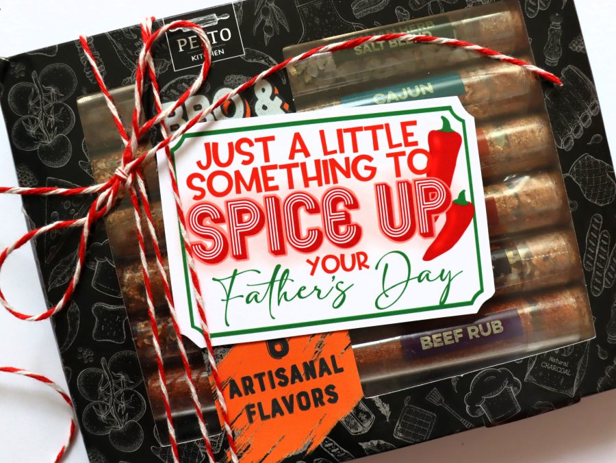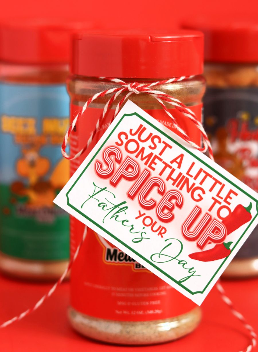Looking for a funny and unique Father’s Day gift idea? This printable Father’s Day Seasoning gift tag is the perfect way to add personality to a simple gift! Featuring the phrase “Just a Little Something to Spice Up Your Father’s Day”, this tag pairs perfectly with your favorite seasoning, spice jar, BBQ rub, or grilling gift.